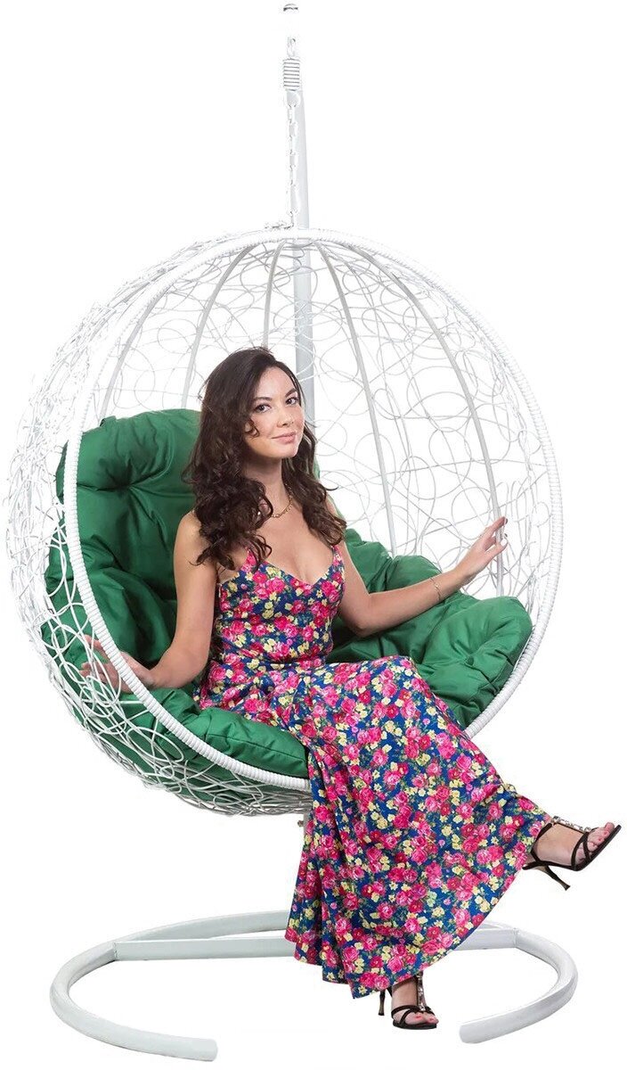 Садовая качель Подвесное кресло BiGarden Kokos white, зеленая подушка