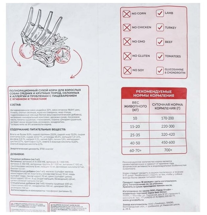 Best Dinner корм для собак средних и крупных пород, с ягненком и томатами 3 кг