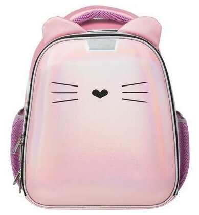 Ранец школьный №1 School Kitty, экокожа, 2 отделения, ортопедическая спинка, розовый
