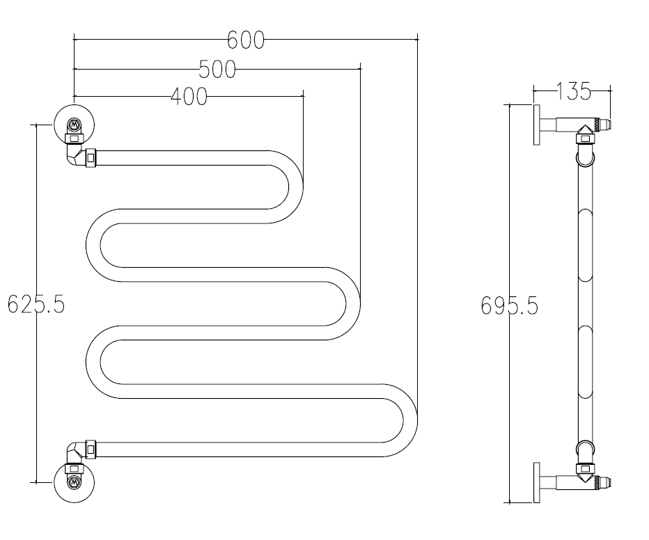 Водяной полотенцесушитель Margaroli Vento 405 Бронза