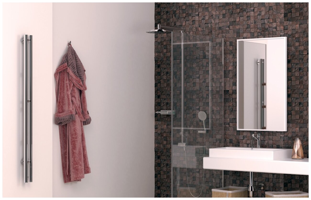 Лучшие цены. Электрический полотенцесушитель 8.5x180 см Сунержа Нюанс Нюанс - стильное и технологичное решение для сушки вещей и обогрева помещения. Этот электрополотенцесушитель I-образная формы изготовлен из высококачественной нержавеющей стали со специальным полимерным покрытием, которое защищает от блуждающих токов и имеет 2 секций для размещения вещей. У него хромированное покрытие, которое впишется в любой интерьер ванной комнаты. Магазины в вашем городе.