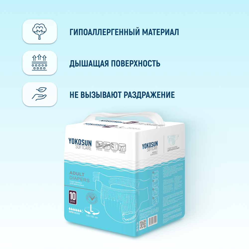 Подгузники для взрослых YokoSun Softcare Adult diapers, L, 100-150 см, 10 шт.