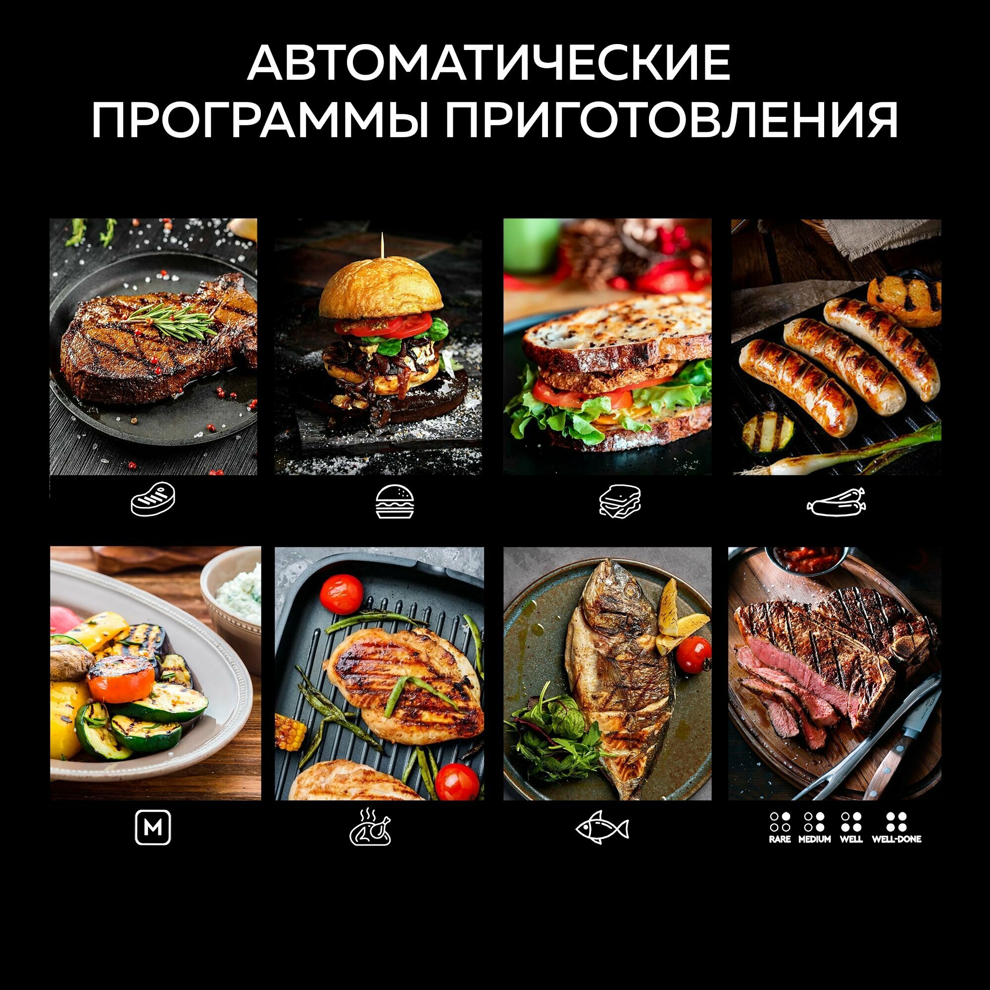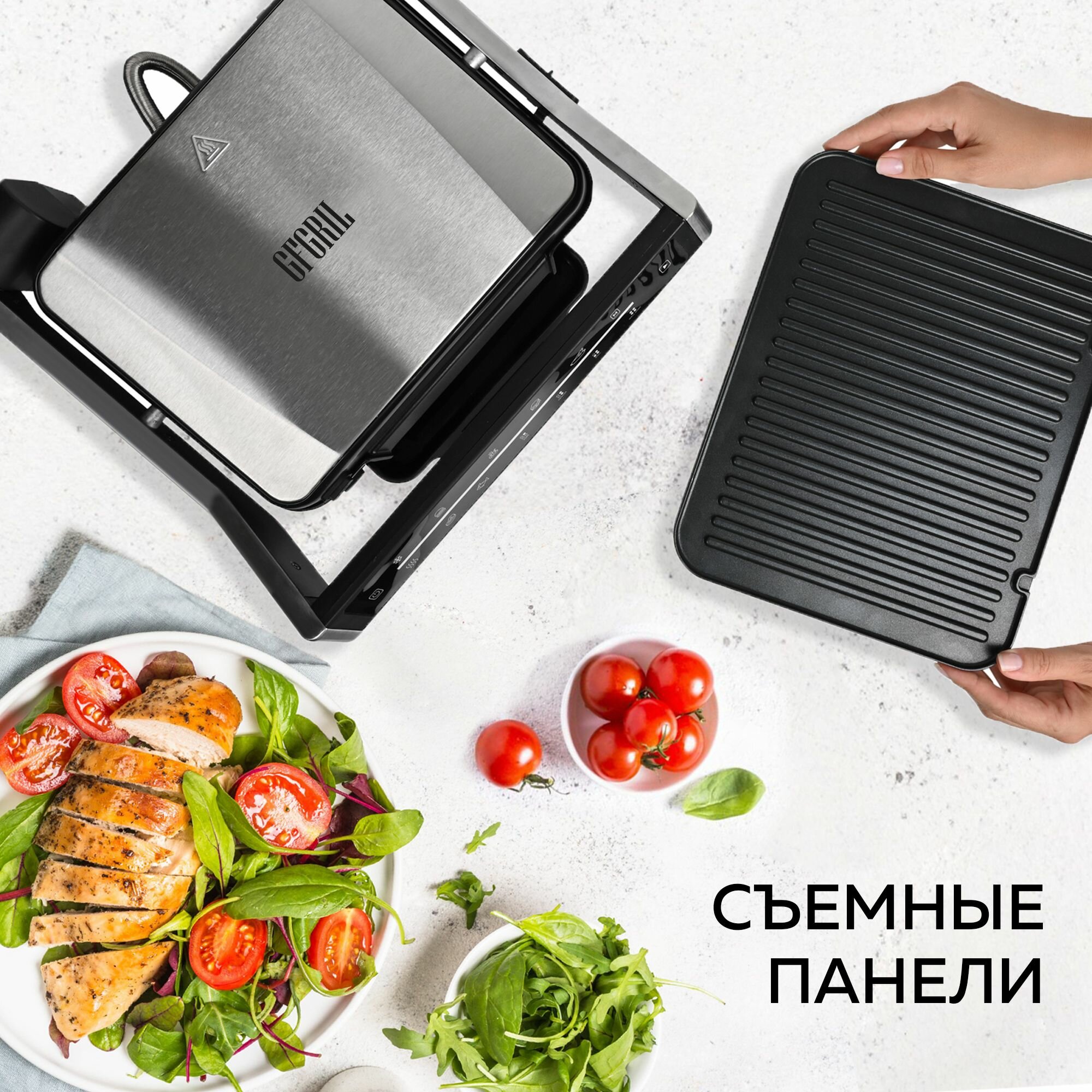 GFGRIL Электрический гриль GFGRIL GF-1500, съемные панели, сенсорное управление, 7 программ, 4 степени прожарки / компактный электрогриль GF-1500 9 990 ₽ Подробнее