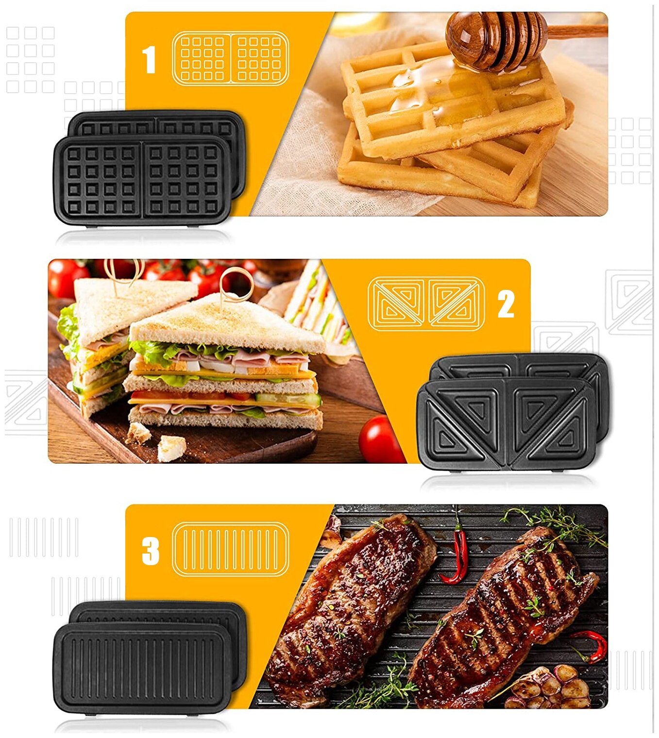Многофункциональный электрический гриль GFGRIL GF-085 с 3 видами панелей: гриль, вафли, сэндвичи, электрогриль мощностью 1200 Вт с антипригарным покрытием и регулировкой температуры