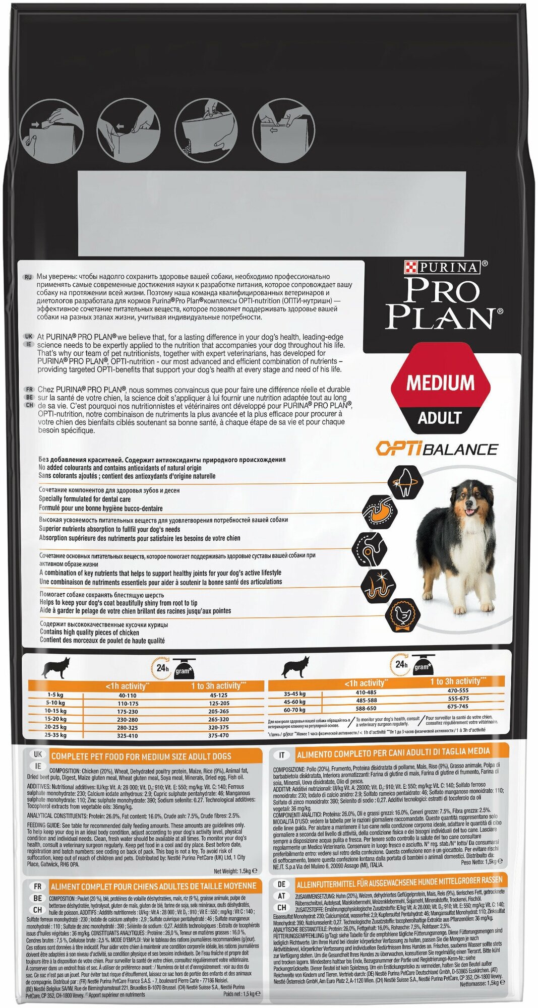 Сухой корм Pro Plan OptiBalance Medium Adult для взрослых собак средних пород, с курицей 1,5 кг