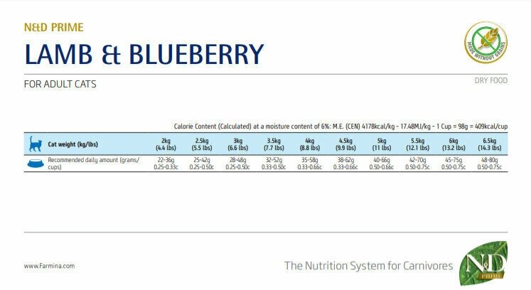 Лучшие цены. Farmina N&D CAT Lamb & Blueberry Adult Фармина Ягненок с черникой - полнорационный беззерновой корм для взрослых кошек Линейка Natural&Delicious (N&D) производства итальянской компании Farmina Pet Foods преимущественно из итальянских ингредиентов. Почему беззерновой? Эволюционно и собаки, и кошки - это хищники, их анатомия такова, что диета должна по сути быть плотоядной. От диких предков нашим домашним любимцам досталось 99,8% генетического кода. Магазины в вашем городе.