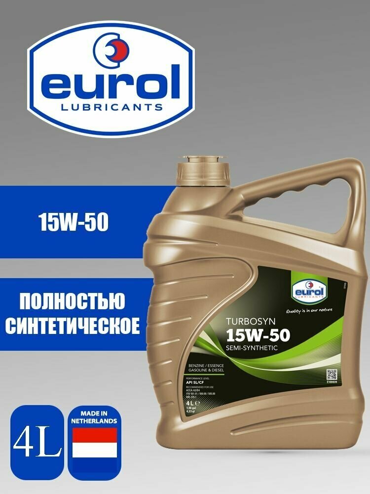 Моторное масло Полусинтетическое моторное масло Eurol Turbosyn 15W-50 Synthetic, 4 л