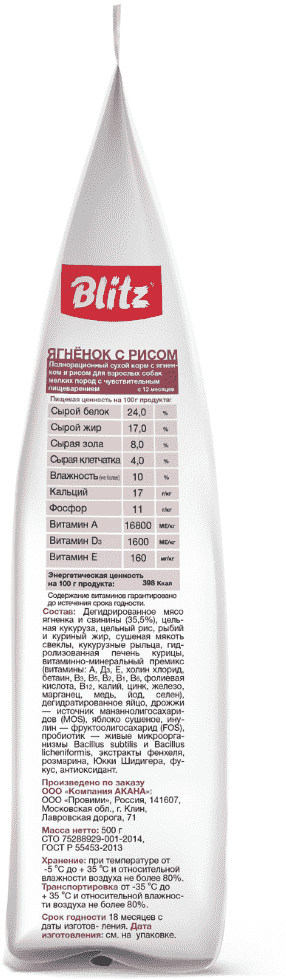 Blitz Корм для мелких собак, ягненок рис BDD07-2-00500, 0,500 кг (10 шт) 4 483 ₽ Подробнее
