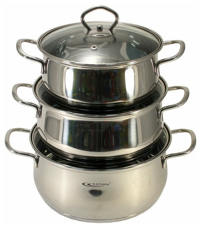 Набор Посуды Нерж 6ПР (3,2л,4,2л,5,2л) Лира (2) Катунь КТ-СР-003 .