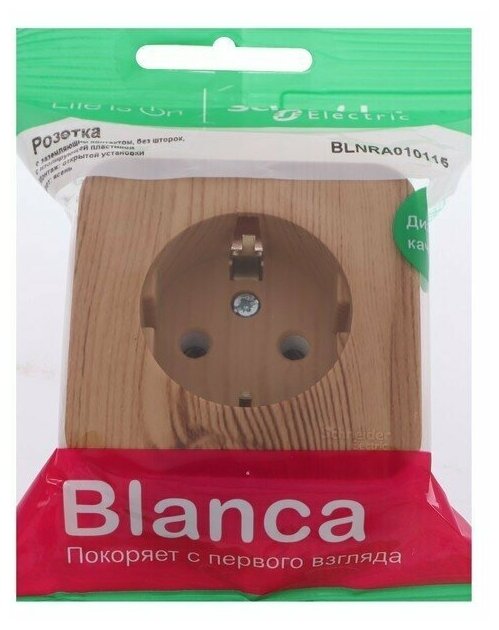 Розетка Розетка 1-м BLANCA 16А 250В без шторок с заземл. изол. пласт. ясень Schneider Electric BLNRA010115