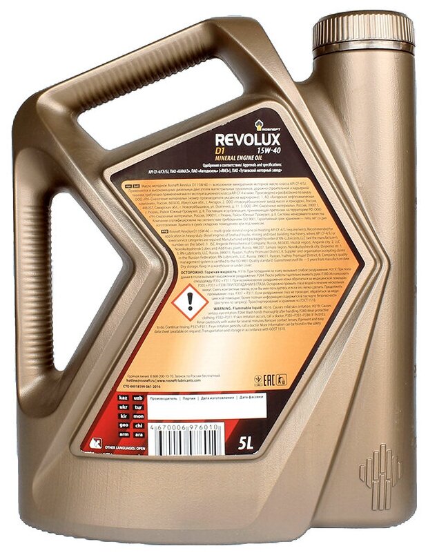 Лучшие цены. Современное всесезонное моторное масло, разработанное для применения в высоконагруженных дизельных двигателях, работающих в тяжёлых условиях эксплуатации, в том числе с удлинённым интервалом замены. Rosneft Revolux D1 15W-40 обеспечивает надёжную защиту и безотказную работу современных дизельных двигателей европейских, американских, азиатских и российских производителей в любых условиях эксплуатации. Магазины в вашем городе.