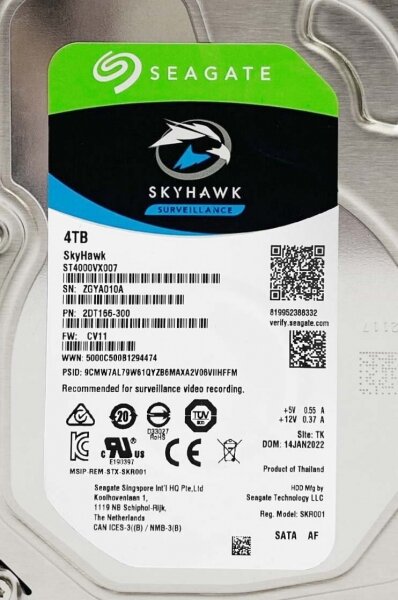 Внутренний HDD диск SEAGATE Skyhawk 4TB, SATA3, 3.5" (ST4000VX007)