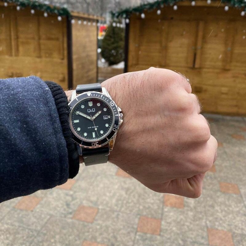 Наручные часы Наручные часы Q&Q A172-332 кварцевые, водонепроницаемые, подсветка стрелок