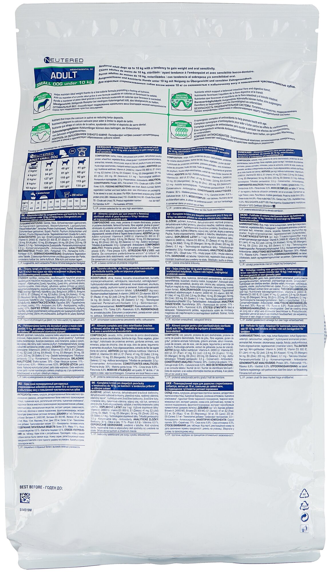 Лучшие цены. Корм сухой полнорационный для взрослых стерилизованных собак весом до 10 кг. Диета для здоровых собак-поддерживает идеальный вес у взрослых стерилизованных/кастрированных собак препятствует образованию зубного налета и зубного камня обеспечивает максимальную защиту пищеварительной системы диета способствует созданию в мочевыделительной системе среды, неблагоприятной для формирования как струвитных, так и оксалатных кристаллов. Магазины в вашем городе.