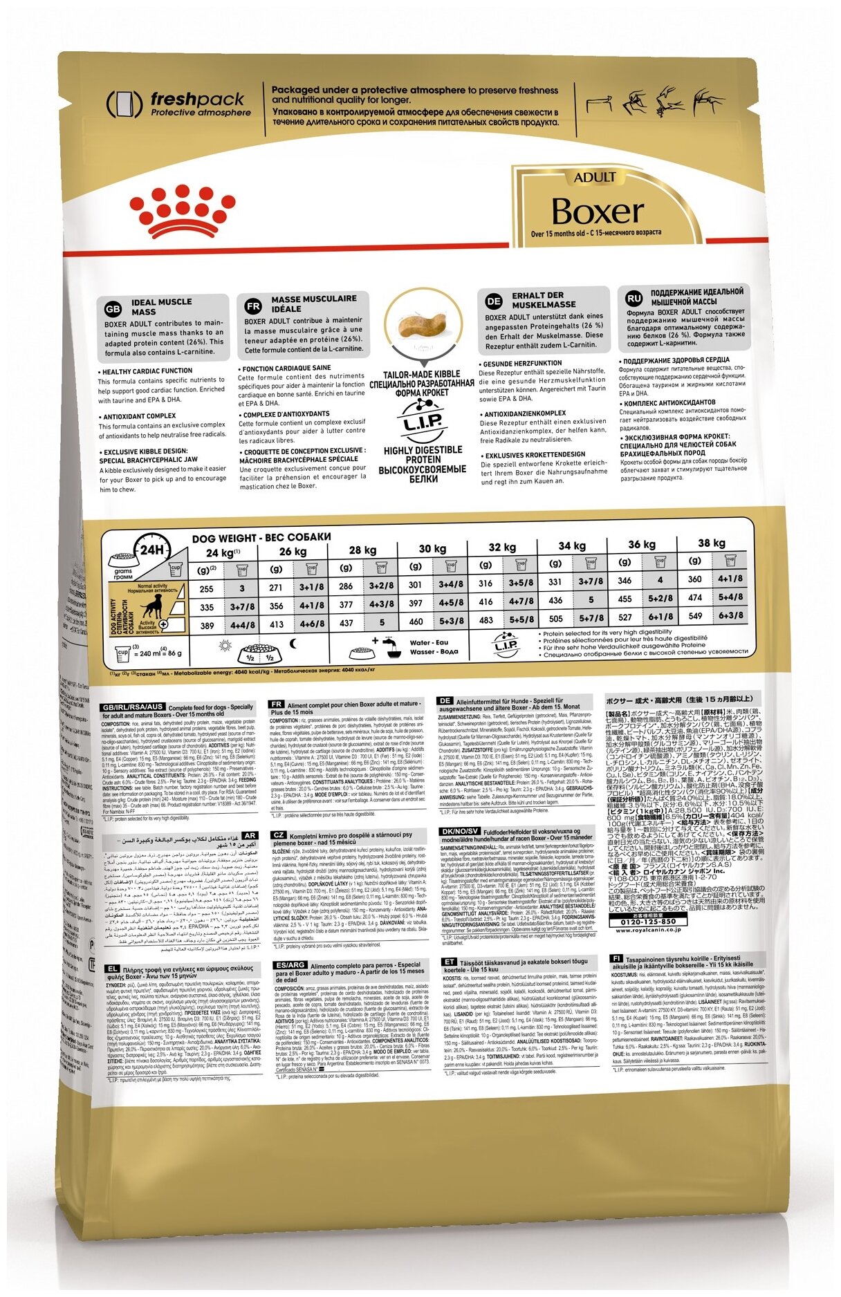 Лучшие цены. Корм сухой полнорационный для взрослых и стареющих собак породы боксер в возрасте 15 месяцев и старше Boxer Adult (Боксер) Собаки породы боксер уверены в себе, игривы и умны. Кроме того, это одна из самых спортивных пород собак. Поскольку у каждой породы есть особые потребности, важно, чтобы рацион вашей собаки помогал поддерживать ее уникальный образ жизни и состояние здоровья. Магазины в вашем городе.