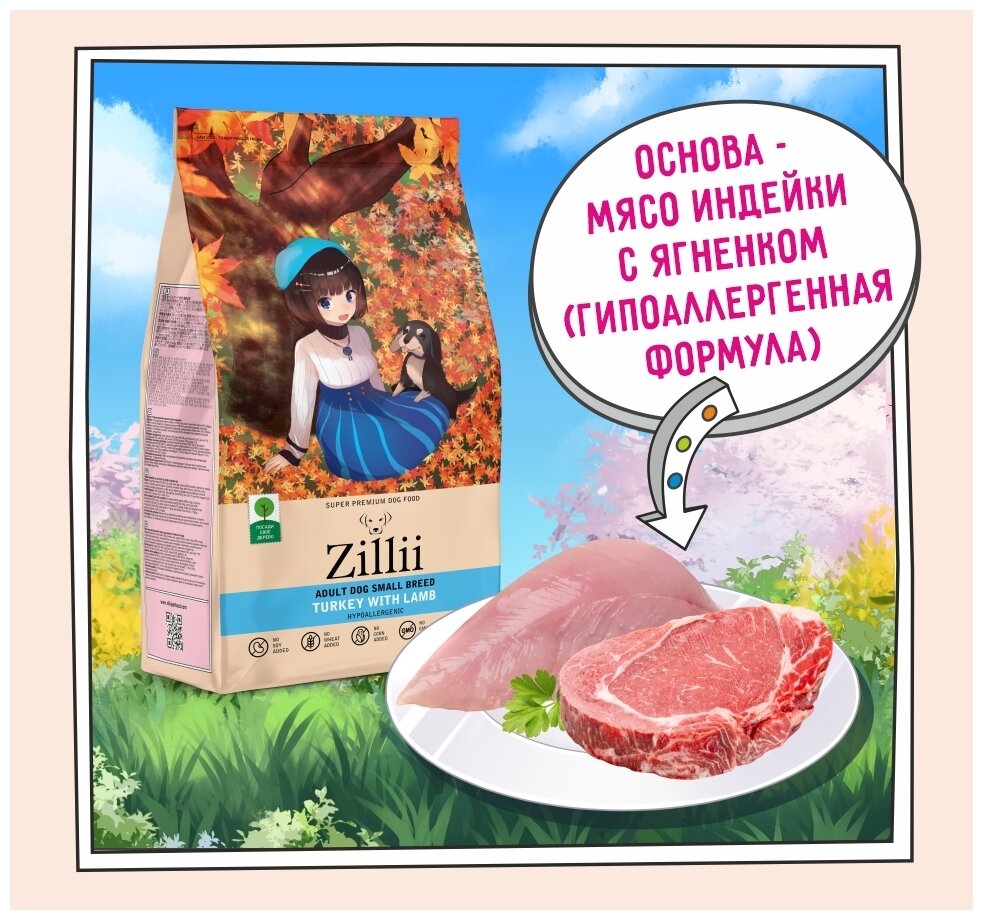 ZILLII (Зилли) Adult Dog Small Breed корм сухой для взрослых собак мелких пород 800 г Индейка с Ягнёнком, гипоаллергенный