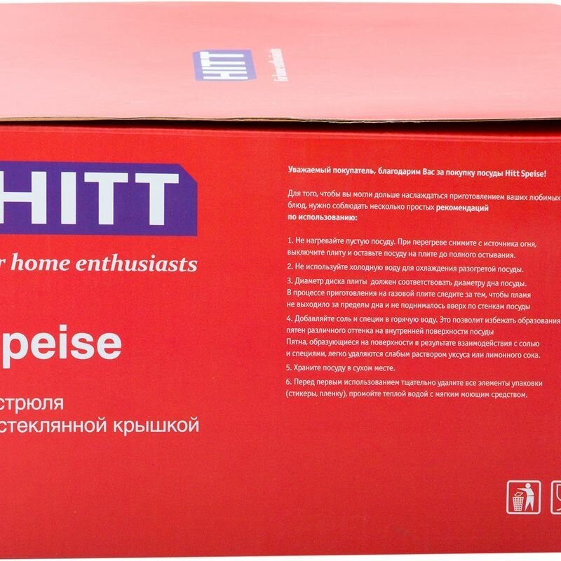 Лучшие цены. Кастрюля нерж. сталь 4,8л Speise стекл. крышка HITT Кастрюля Hitt Speise, изготовленная из высококачественной нержавеющей стали с матовой полировкой внутри и снаружи, имеет тройное штампованное дно с вплавленным алюминиевым диском. Такая конструкция способствует высокой теплопроводности и равномерному распределению тепла. Стенки толщиной 0,5 мм удерживают тепло по всей поверхности кастрюли, благодаря чему пища равномерно и быстро нагревается. Магазины в вашем городе.