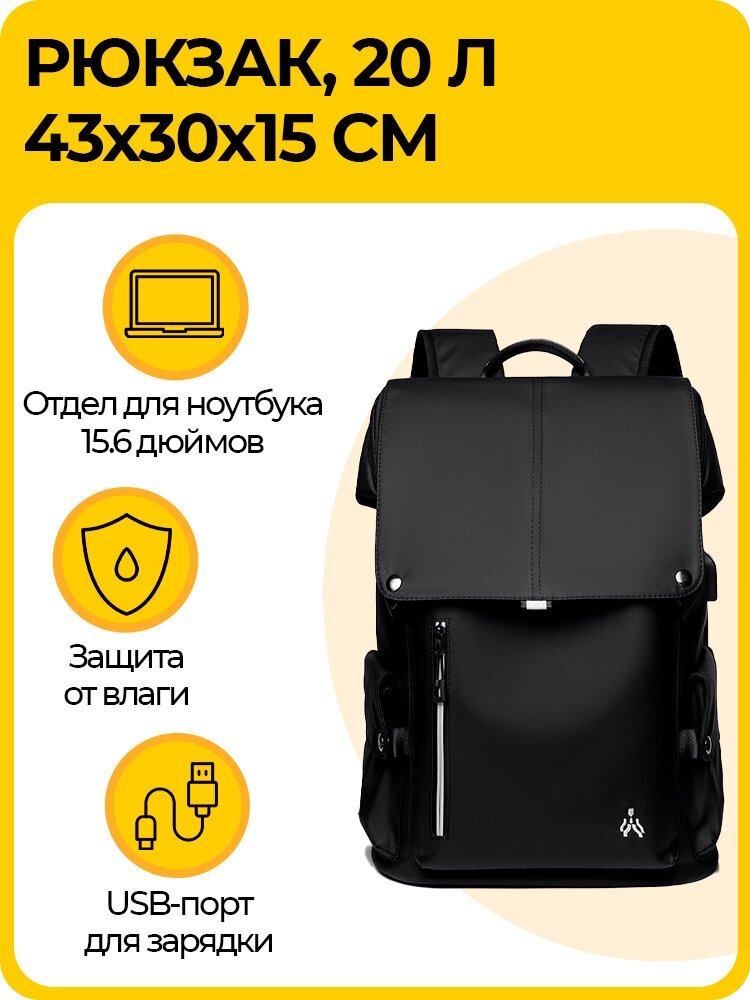 Лучшие цены. Характеристики Тип: рюкзак Назначение: городской Объем: 20 л Тактический: нет Количество лямок: 2 Боковые карманы: да Фронтальный карман: да Верхний клапан: нет Верхний карман: нет Боковая стяжка: нет Грудная стяжка: нет Основной цвет: черный Материал: полиэстер Высота: 430 мм Ширина: 300 мм Толщина: 150 мм Габариты без упаковки: 430х300х150 мм Вес нетто: 0.97 кг Пол: мужской Возрастная категория: взрослые Рисунок: нет Карман на спинке: нет Светоотражающие элементы: да Поясной ремень: нет Нижний вход: нет. Магазины в вашем городе.