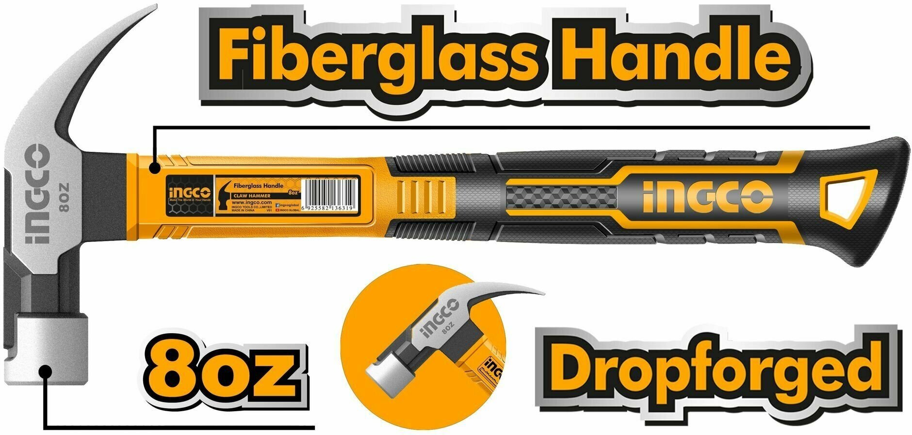 Молоток Молоток Гвоздодер Фибр/руч 220ГР Кровельщика Industrial Ingco (6) HCHD0086 .