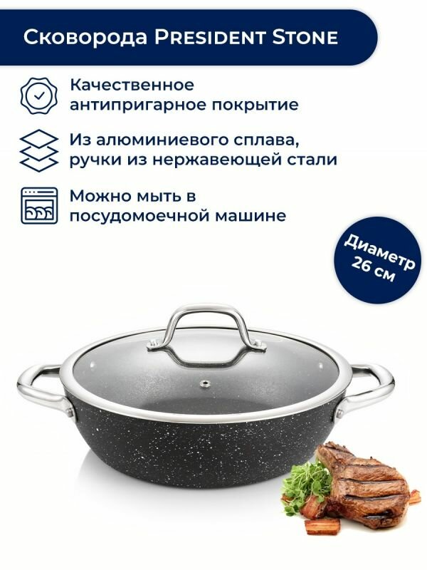 Сковорода глубокая Tescoma PRESIDENT STONE с крышкой диаметр 26 см