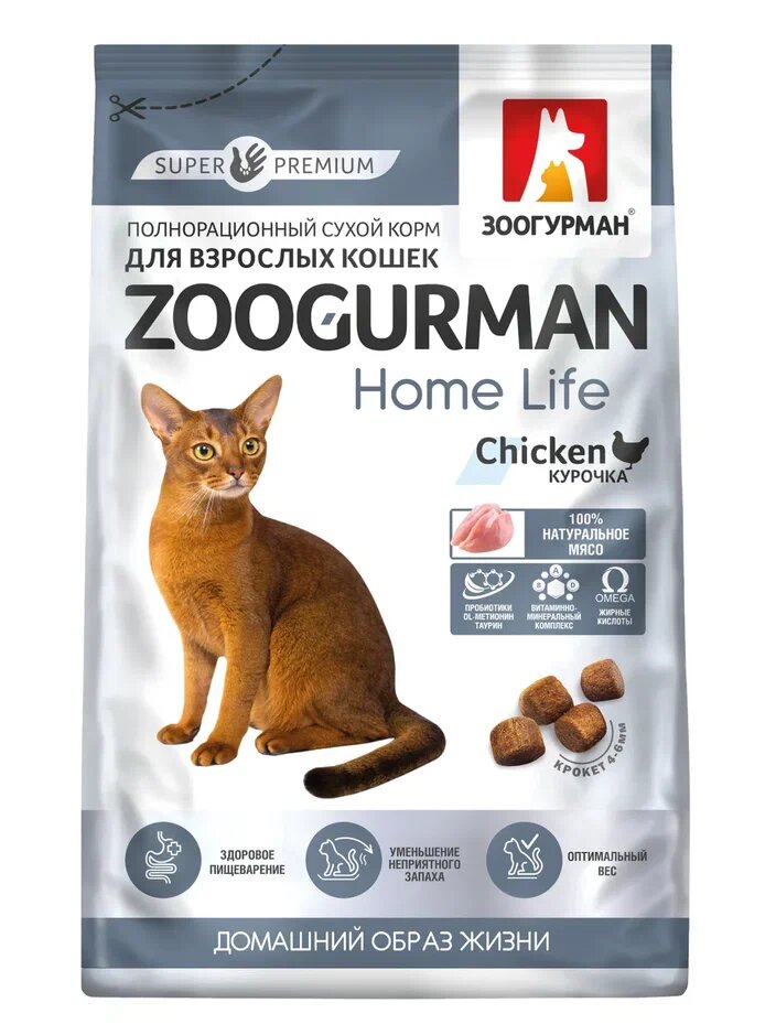 Лучшие цены. Полнорационный сухой корм для взрослых кошек Zoogurman Home Life, Курочка Домашний образ жизни - Здоровое пищеварение - Уменьшение неприятного запаха - Оптимальный вес. Магазины в вашем городе.