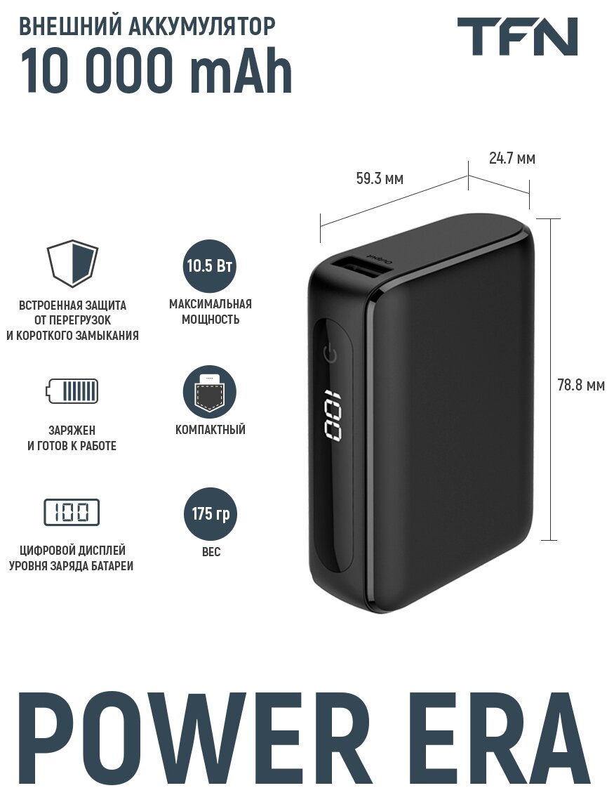 Внешний аккумулятор (Power Bank) TFN Power Era 10, 10000мAч, черный [tfn-pb-252-bk]