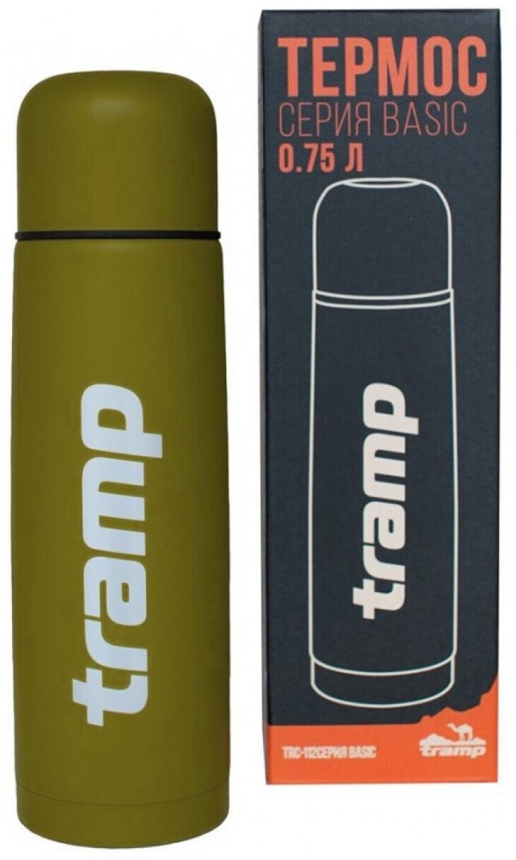 Термос Tramp "Basic 0.75 л", TRC-112, нержавеющая сталь/пластик, с пробкой и крышкой-чашкой, оливковый