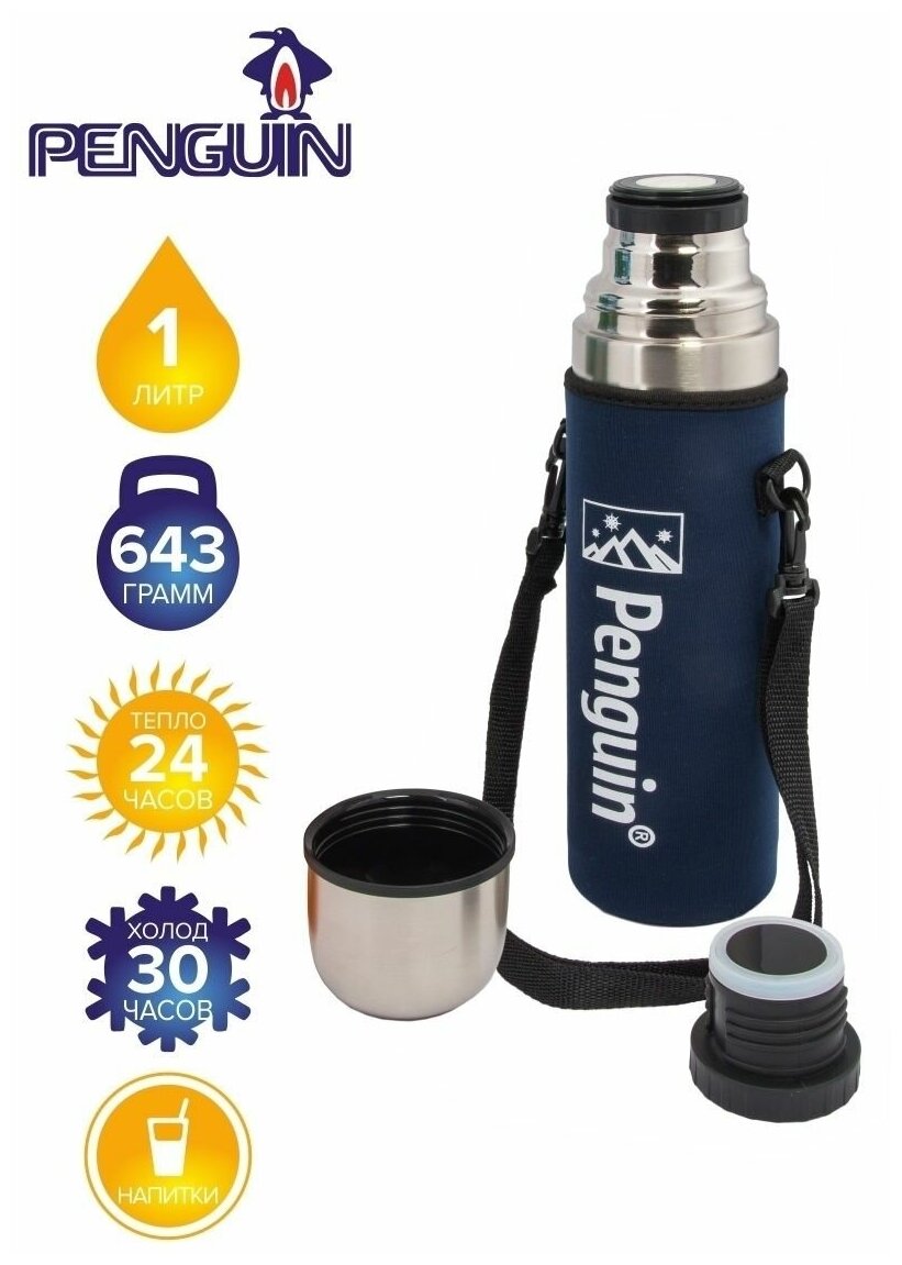 Классический термос Penguin BK-20P, 1 л, серебристый