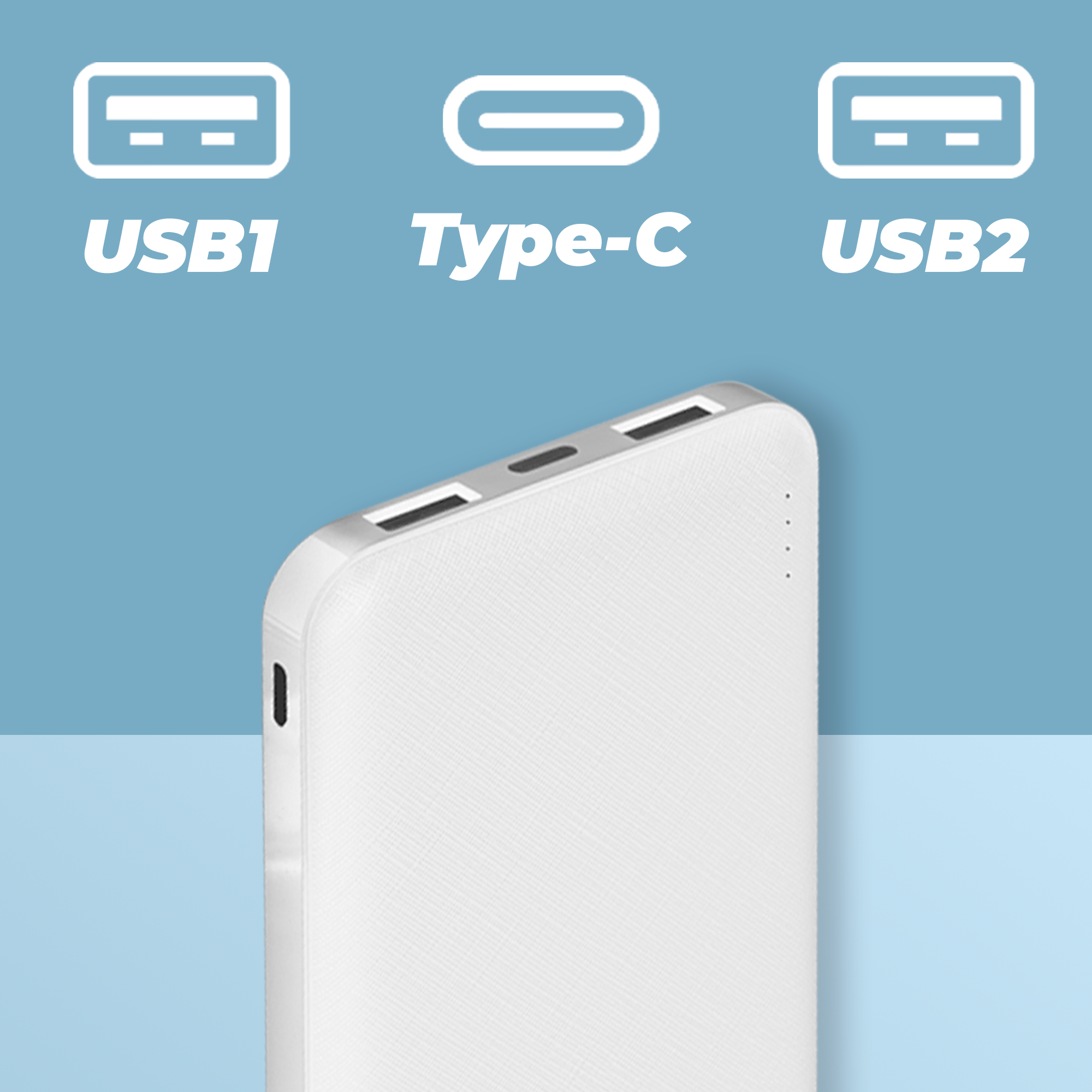 Портативный внешний аккумулятор 10000 mAh, разъемы Type-C, microUSB, USB*2, WALKER, WB-410, белый / powerbank, power bank на телефон, повербанк, банка