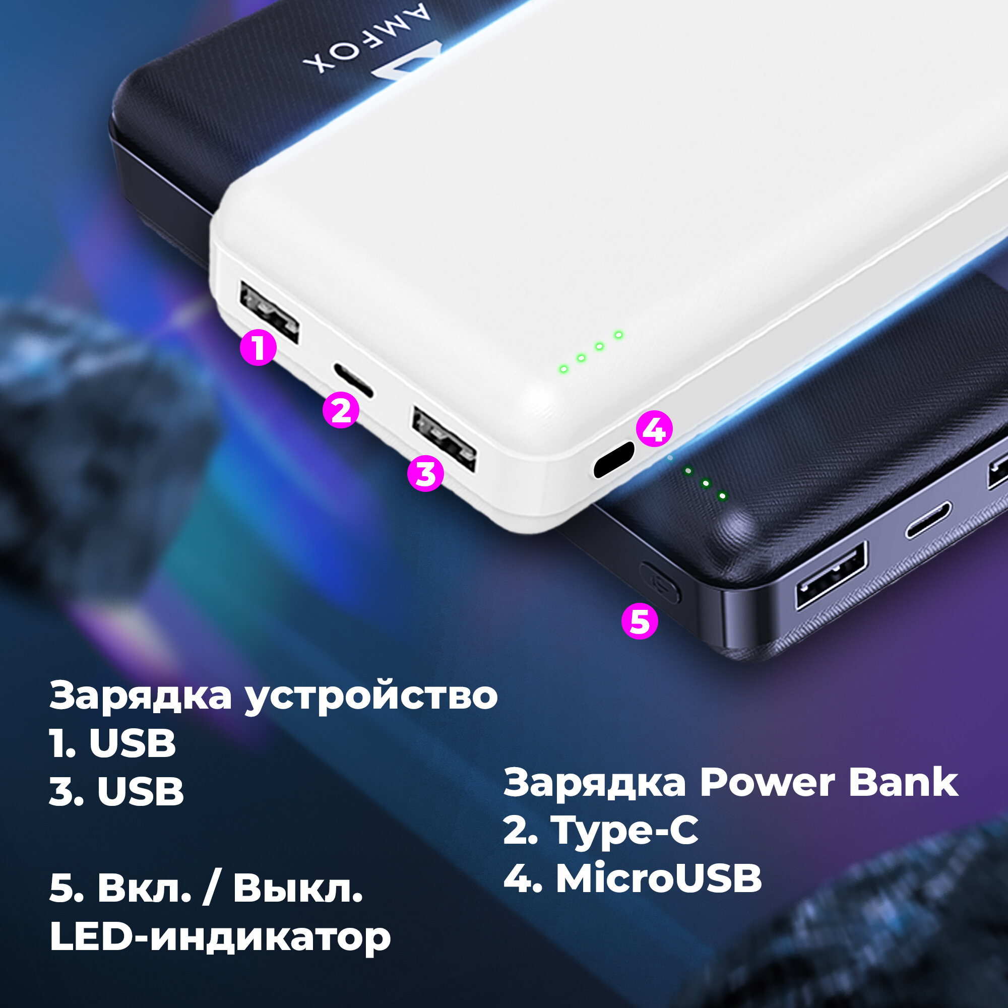 | Входы зарядки powerbank'a | USB type C / Apple Lightning |