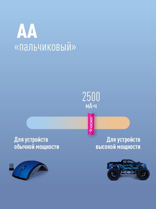 Аккумуляторные батарейки, R6 NI-MN BP-2 космос KOCR6NIMH2500MAH2BL