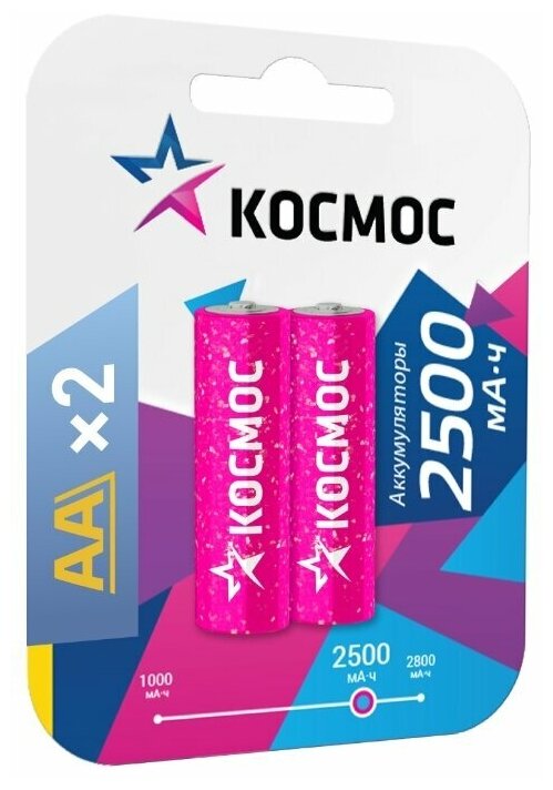 Аккумулятор Космос AA, HR6 2500 mAh, NI-MH, 2 шт