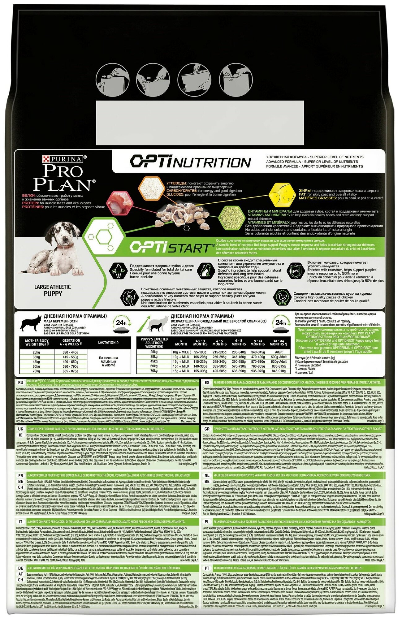 Сухой корм Purina Pro Plan Optistart Large Athletic Puppy для щенков крупных пород атлетического телосложения с курицей и рисом 3кг 12272210