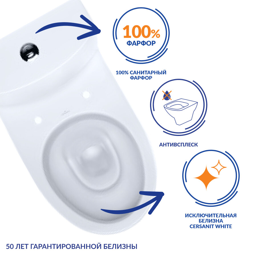 Унитазы Cersanit Унитаз-компакт Parva б/о, г/в, 2 -реж, сид. DP, Soft Close, Clip up 455893