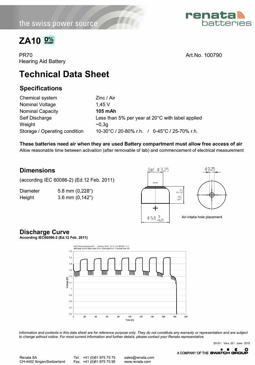 Лучшие цены. Универсальные оригинальные цинково-воздушные аккумуляторы батарейки RENATA za312, za10, za-13 и za675 с высокой емкостью для слуховых аппаратов также оптимально подходят и для аналоговых и цифровых аппаратов и устройств. МикроБатарейка таблетка за312 и за10, за13 и за675 для слуховых устройств сверхвысокой мощности с долгосрочным использованием и с широким диапазоном рабочих температур имеет низкое внутреннее сопротивление при импульсной нагрузке. Магазины в вашем городе.