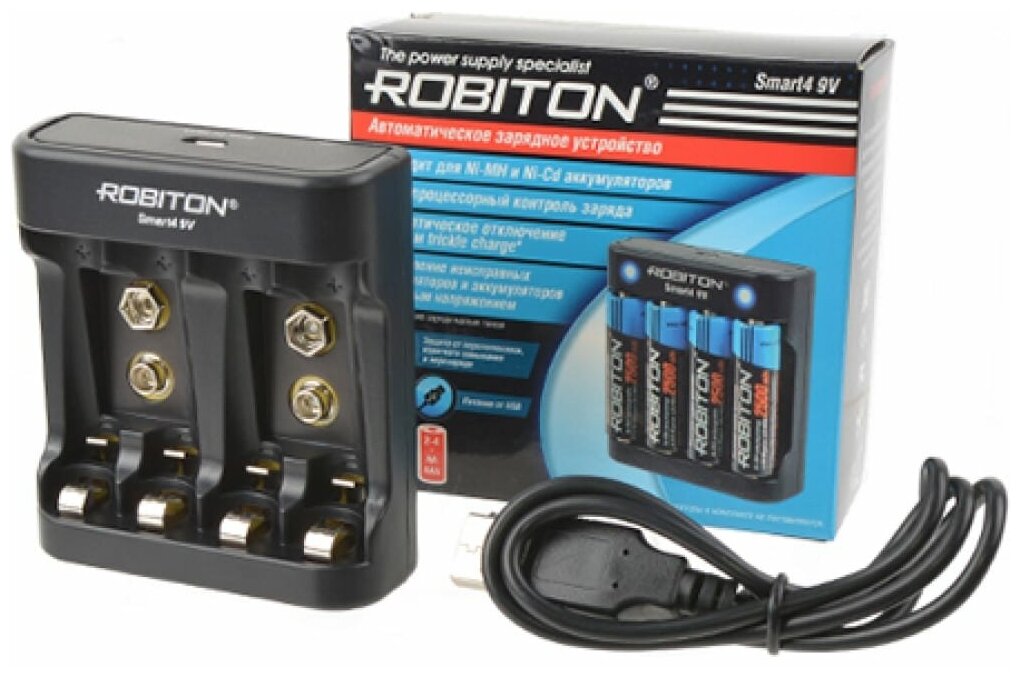 Автоматическое зарядное устройство для 2-4 аккумулятора тип АА, ААА и 1-2 типа крона Ni-MH,Ni-Cd питание от 5В USB (шнур USB - micro USB в комплекте) - Smart4 9V (ROBITON) (код заказа 16975 ) 725 ₽ Подробнее