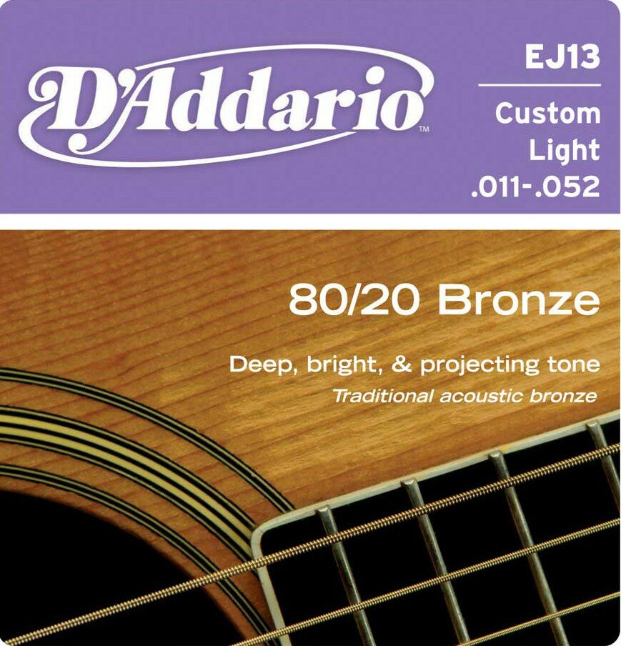 EJ13 BRONZE 80/20 Струны для акустической гитары бронза Custom Light 11-52 D`Addario