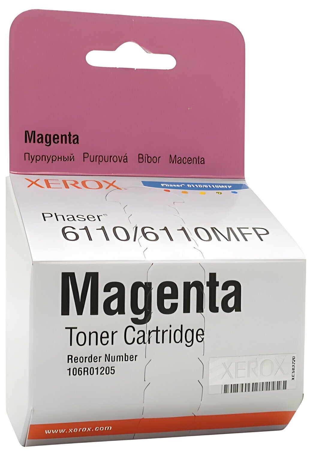 Лучшие цены. Картридж тонер Xerox Phaser 6110 106R01205 Magenta пурпурный оригинальный Используется для качественной печати для лазерных принтеров и мфу Xerox Phaser 6110 Тонер - пурпурный Ресурс печати - 2000 страниц формата А4 при заполнении листа тонером на 5% Купить картридж тонер Xerox Phaser 6110 106R01205 Magenta пурпурный оригинальный вы можете в нашем магазине по низкой цене Xerox 106R01205. Магазины в вашем городе.
