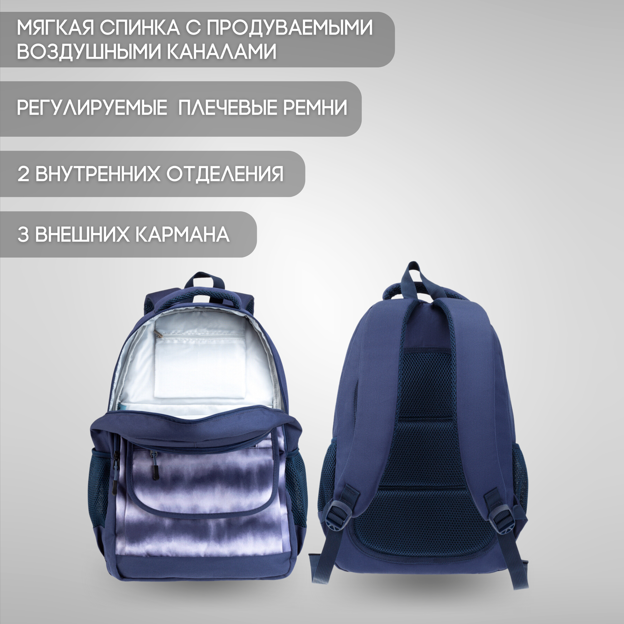 Школьный рюкзак для мальчика девочки TORBER CLASS X, ортопедический, темно-синий