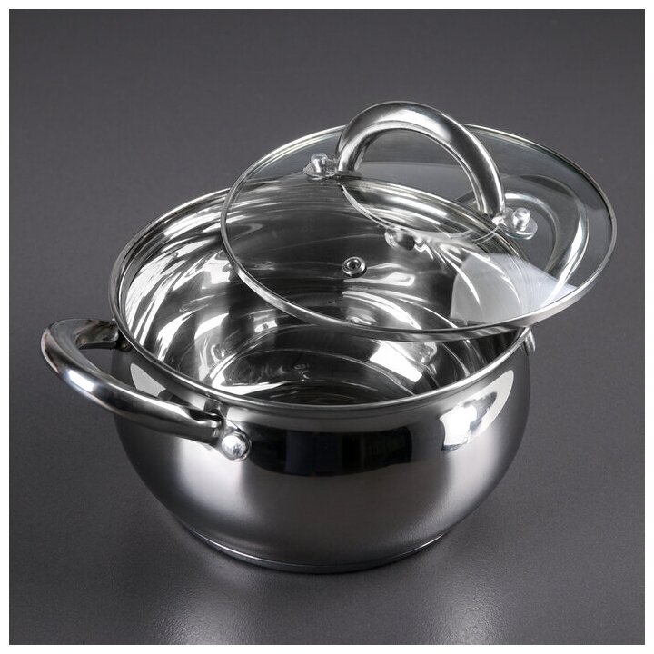 Кастрюля из нержавеющей стали Доляна «Гиперион», 2,5 л, d=18 см, с крышкой (арт. 813557)