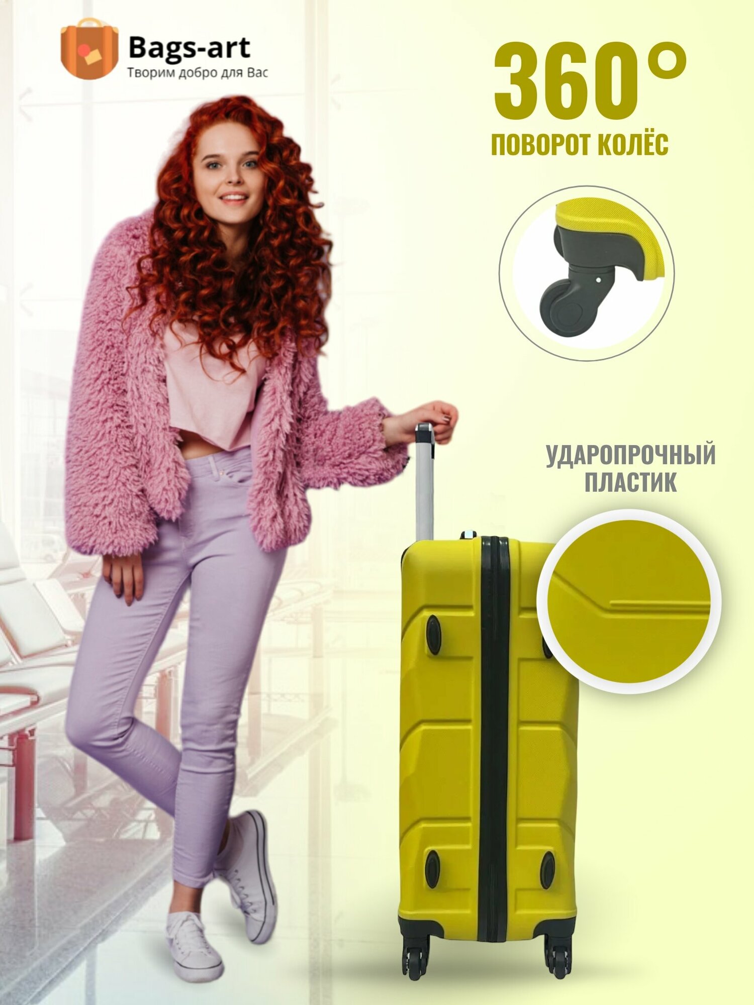 Чемодан на колесах для путешествий отпуска и отдыха большого размера, Freedom L пластиковый ABS поликарбонат женский и мужской вместительный6
