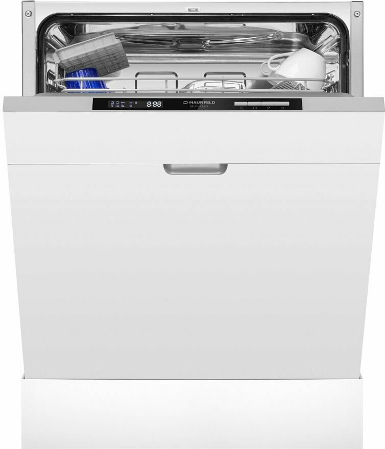 Лучшие цены. Посудомоечная машина Maunfeld MLP-122D подойдет для большой семьи ведь он способна вместить 12 комплектов посуды. Из 6 программ мойки вы можете выбрать нужную вам. С программой для хрупкого стекла можно не бояться что повредятся: бокалы, фужеры или стеклянная посуда. Функция "3 в 1" отмоет любые загрязнения. Ключевые особенности: 12 комплектов посуды 6 программ мойки Функция "3 в 1"Полноразмерная посудомоечная машина c электронным управлением. Магазины в вашем городе.
