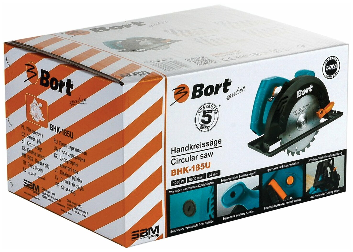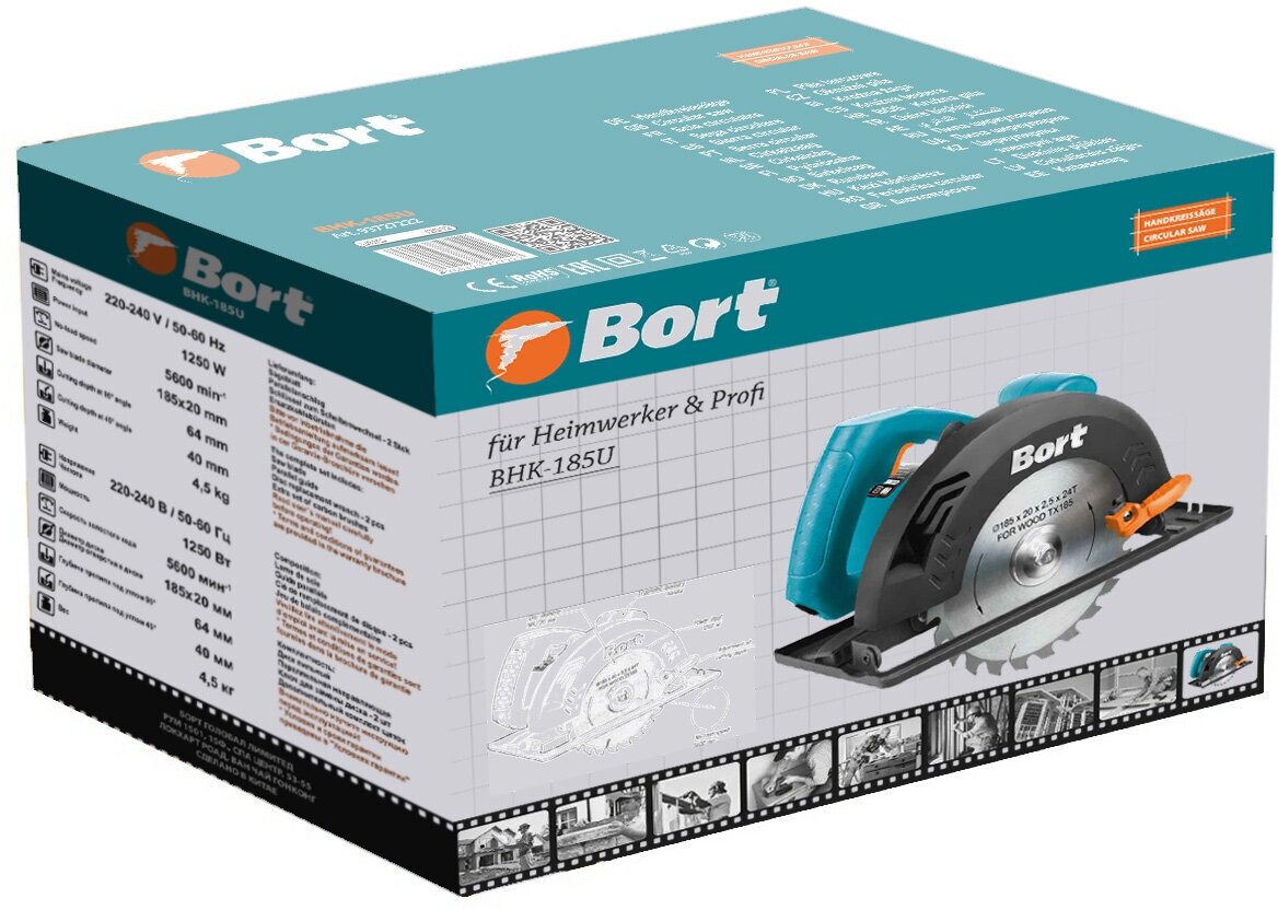 Циркулярная пила (дисковая) Bort BHK-185U 1250Вт (ручная)