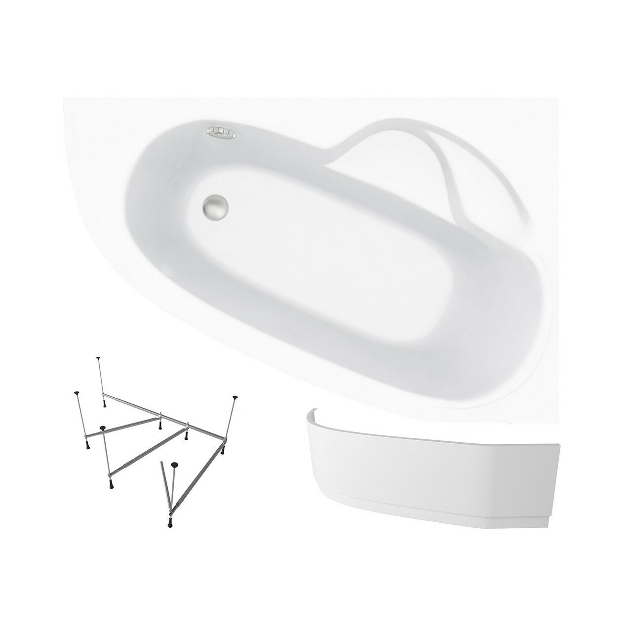Ванны Акриловая ванна 140х95 см Lavinia Boho Bell Pro набор 3 в 1 S2-3702140R: угловая ванна (правый разворот), металлический каркас, лицевой экран