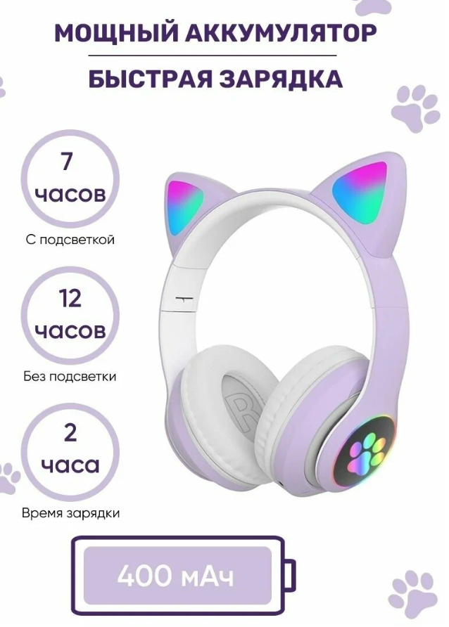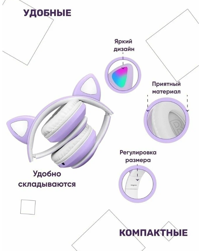 Беспроводные наушники Bluetooth со светящимися кошачьими ушами STN-28 / фиолетовые 666 ₽ Подробнее