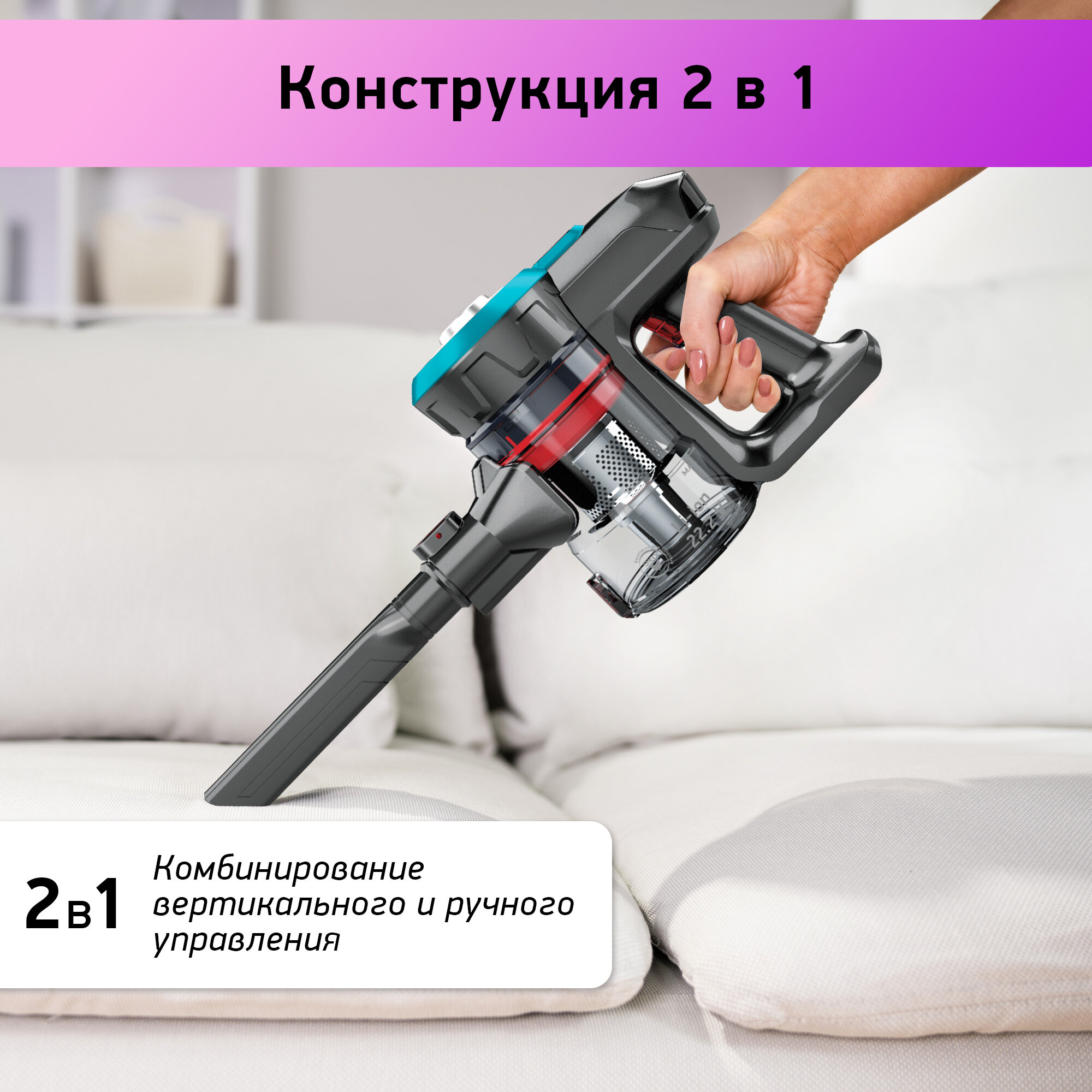 Пылесос Вертикальный беспроводной пылесос "2 в 1" BBK BV2527 бирюзовый, мощность всасывания 250 Вт, объем пылесборника 0,55 л, сухая уборка