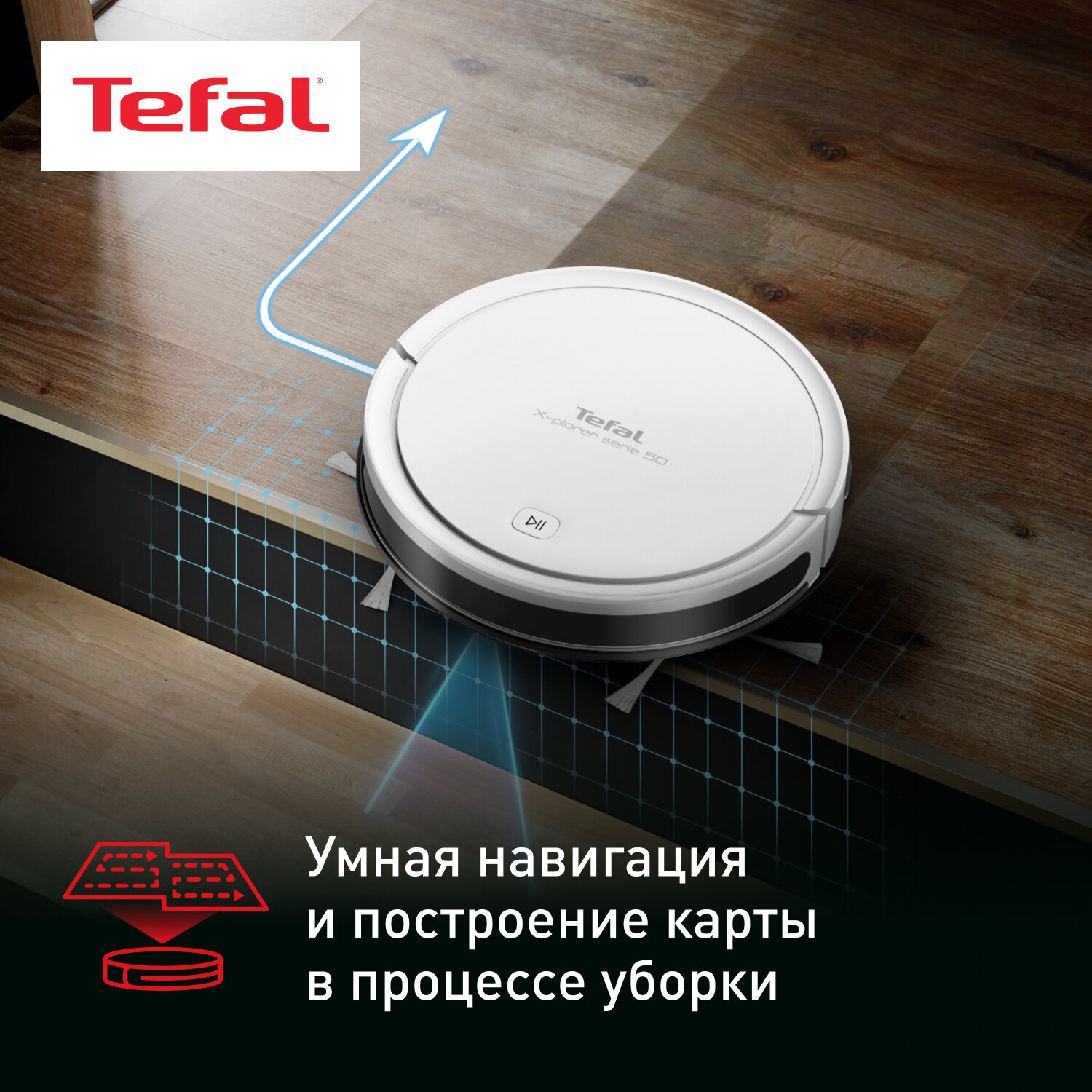 Пылесосы Робот-пылесос 4в1 Tefal X-plorer Serie 50 RG7387WH работает с Алисой, с сухой и влажной уборкой до 2 ч, белый