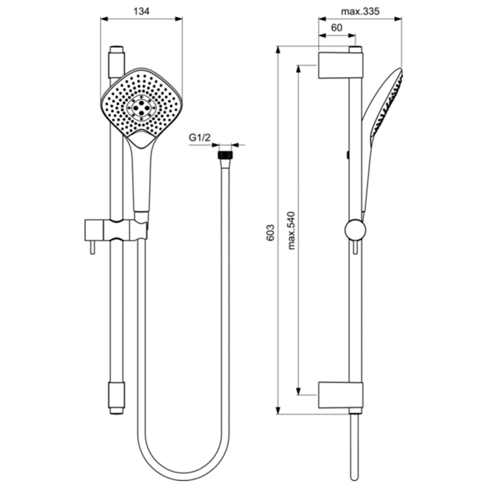 Душевой гарнитур Ideal Standard IdealRain, арт. B1762AA, 3 режима, штанга 60см