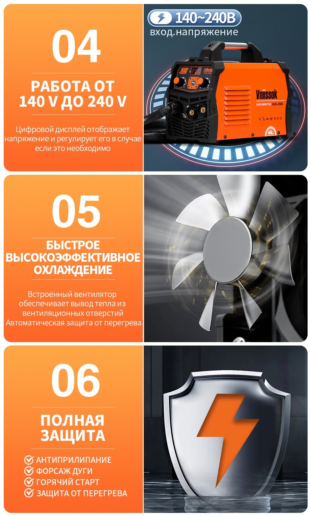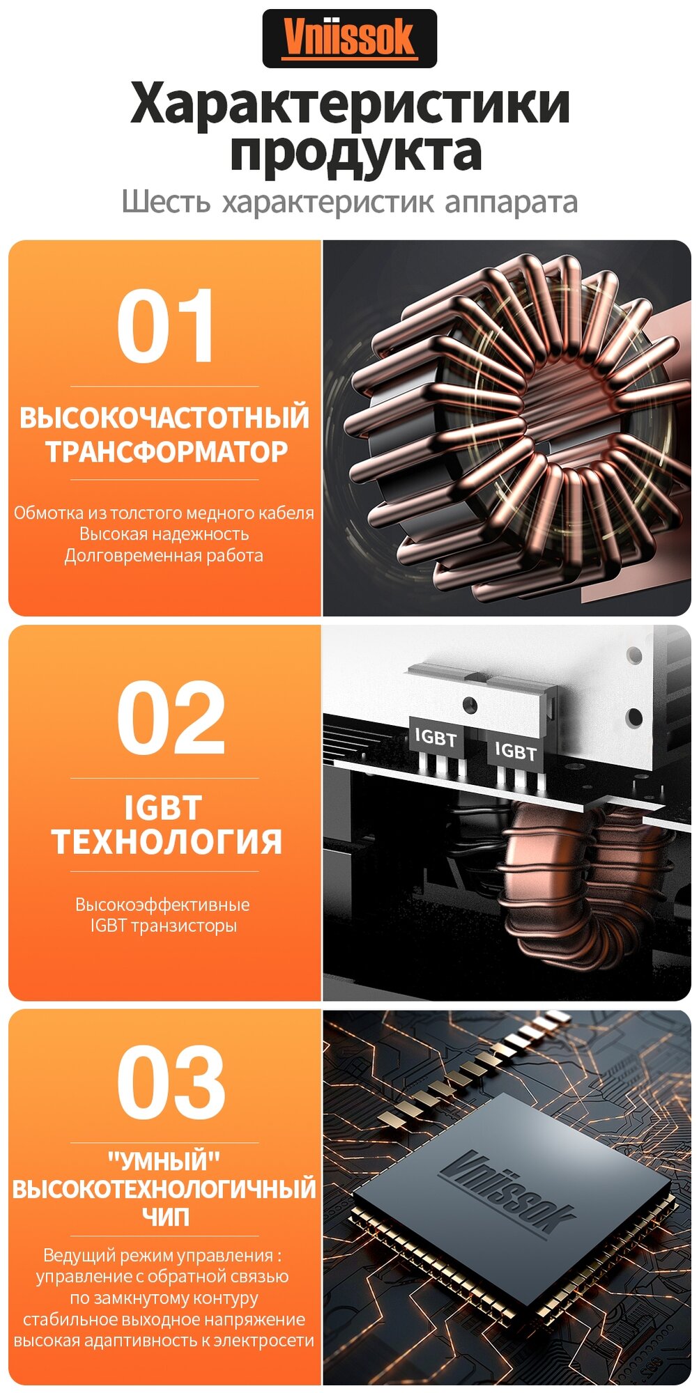 Лучшие цены. Сварочный аппарат инверторный полуавтомат Vniissok MIG-200 без газа 3 в 1 (ММА/MIG NO GAS/TIG) IGBT Данный инструмент построен на современной элементной базе с использованием IGBT транзисторов ведущих производителей в отрасли. Инверторная частота 50кГц позволяет значительно уменьшить габаритные размеры и вес сварочного аппарата. Значительное уменьшение потерь металла от брызг, заметно увеличивает эффективность сварки и уменьшает затраты энергии. Магазины в вашем городе.