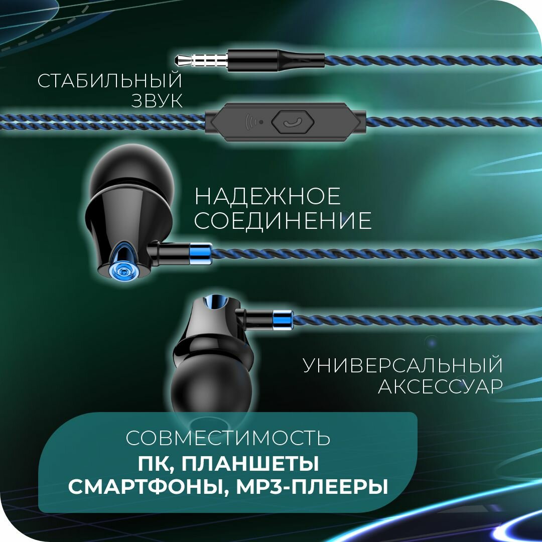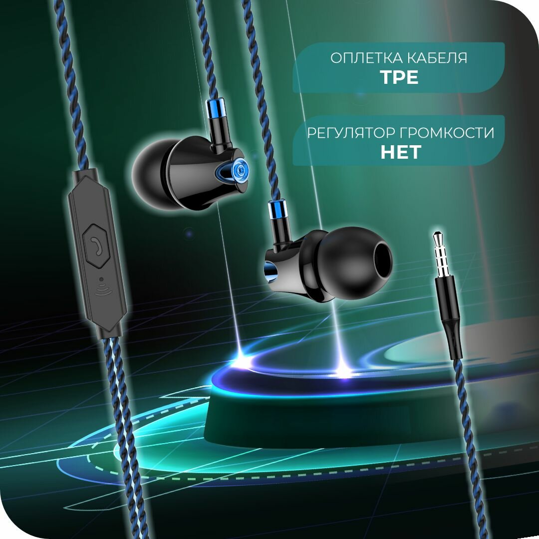 Наушники MORE CHOICE G26 проводные, вакуумные, 1,1м, черный/синий